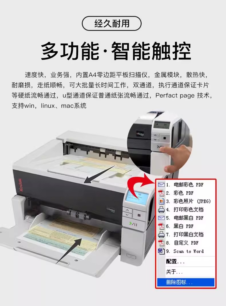 型号2:S3080,速度80张,纸仓300张,日扫描量:35000张 价格:21000元